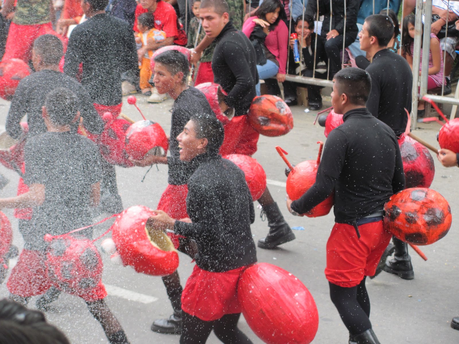 I hadn’t quite got enough dancing and celebrating in so I attended Cochabamba’s carnival parade celebration just a few days later. I went with kids from the youth group at San Carlos and it was a good day, but I got TOTALLY soaked with water walking back to my bench in the stands. They asked me if I’d fallen in the river...it was bad. The “Corso de Corsos” as they call it here in Cochabamba is much less organized and slower than the Carnival procession in Oruro, but I still had a good time. There were also less traditional dances and costumes which the military groups presented.